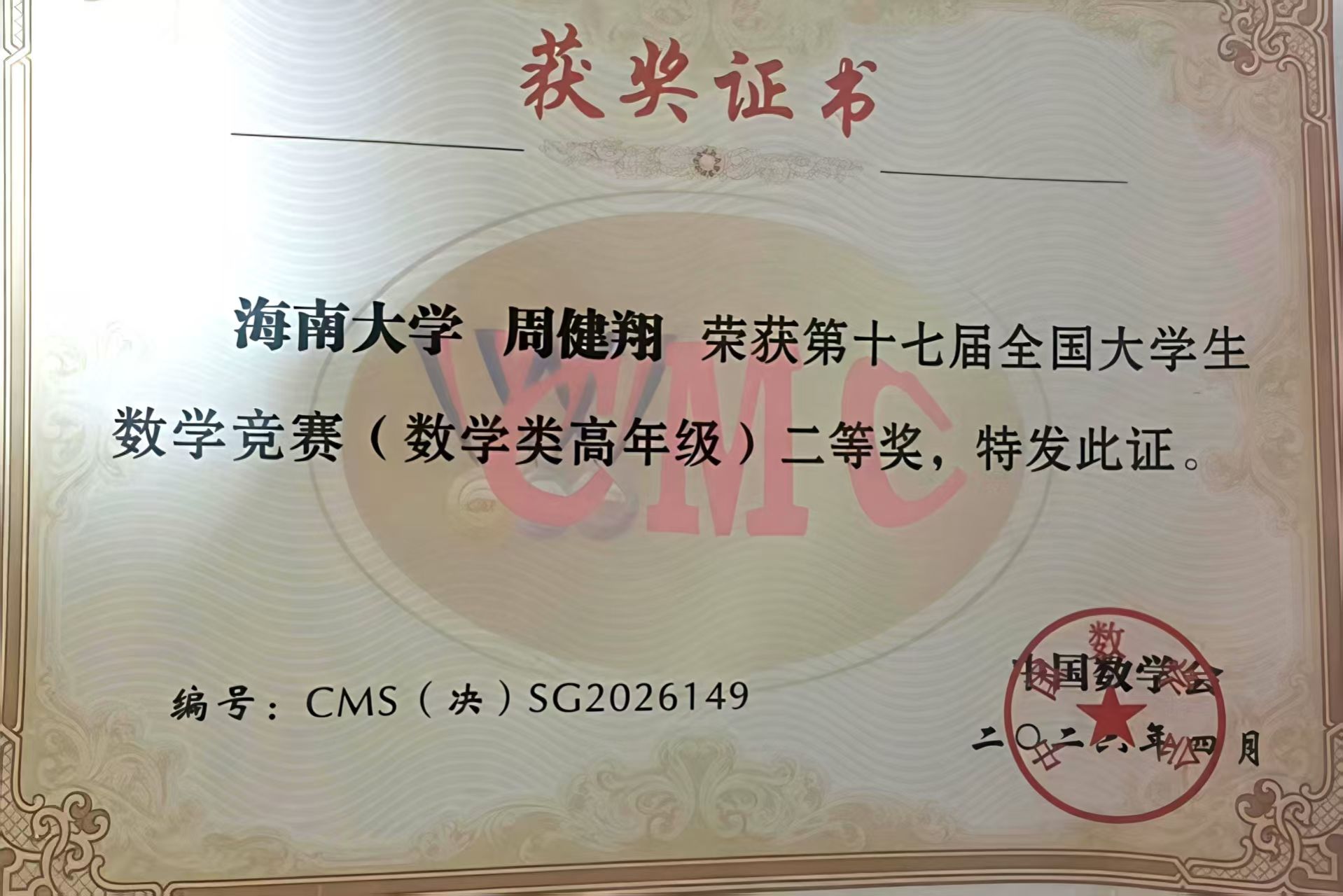 4月18日,第十七届全国老员工数学竞赛决赛在四川大学落幕。suncitygroup太阳集团网址员工表现优异:2023级数学与应用数学(基地班)周健翔获数学类高年级组二等奖;2022级数学与应用数学詹发雄、2024级数学与应用数学(基地班)叶天浩分获高年级组与低年级组三等奖;2023级土木工程傅坤宇获非数学专业A类二等奖;2024级应用物理张富凯获非数学专业A类三等奖。感谢竞赛团队陈颖,罗志丹,符一平三位老师辛勤指导工作。